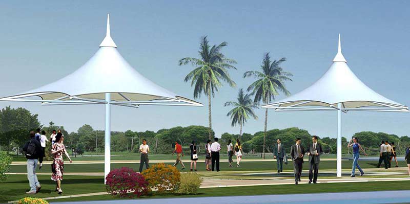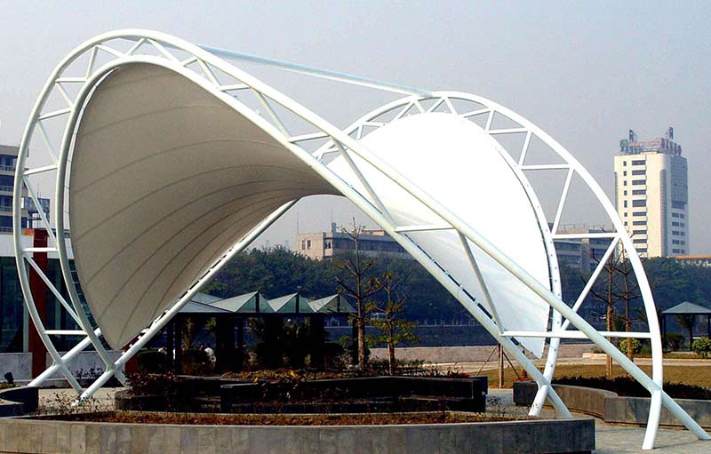 張拉膜結(jié)構(gòu)(Tesioned Membrane Structure) ,是依靠膜自身的張拉應(yīng)力與支撐桿和拉索共同構(gòu)成機(jī)構(gòu)體系。