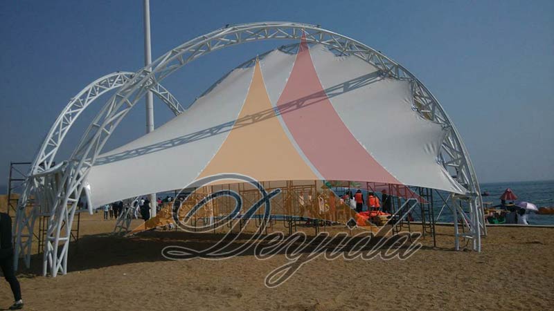 膜結(jié)構(gòu)與造型學(xué),色彩學(xué)為依托,可結(jié)合自然條件及民族風(fēng)情,根據(jù)建筑師的創(chuàng)意建造出傳統(tǒng)建筑難以實(shí)現(xiàn)的曲線及造型。膜結(jié)構(gòu)一建筑師的浪漫設(shè)想,享受大自然般的浪漫空間。長春遮陽棚24小時(shí)客戶服務(wù)電話:13756539177