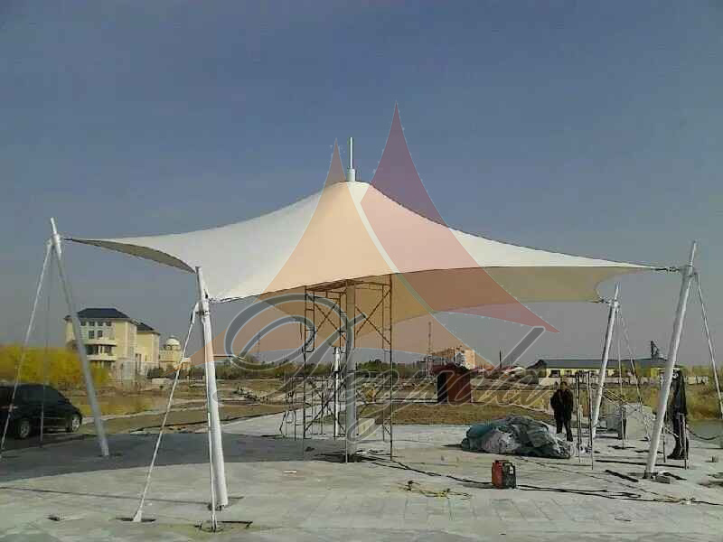張拉膜結(jié)構(gòu)的美就在于其“力”與“形”的完美結(jié)合。張拉膜結(jié)構(gòu)的基本組成單元通常有:膜材、索與支承結(jié)構(gòu)(桅桿、拱或其他剛性構(gòu)件)。