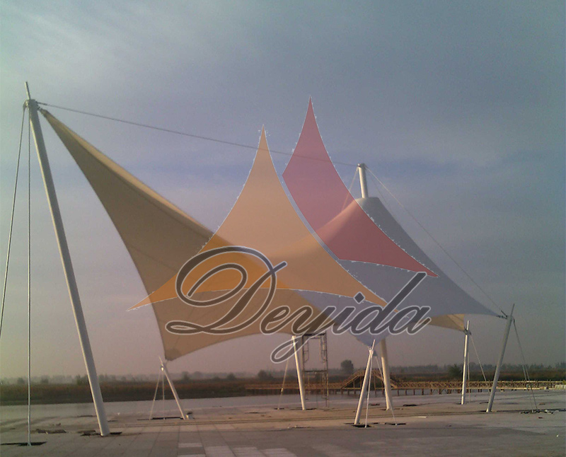 張拉膜結(jié)構(gòu)(Tesioned Membrane Structure) ,是依靠膜自身的張拉應(yīng)力與支撐桿和拉索共同構(gòu)成機(jī)構(gòu)體系。